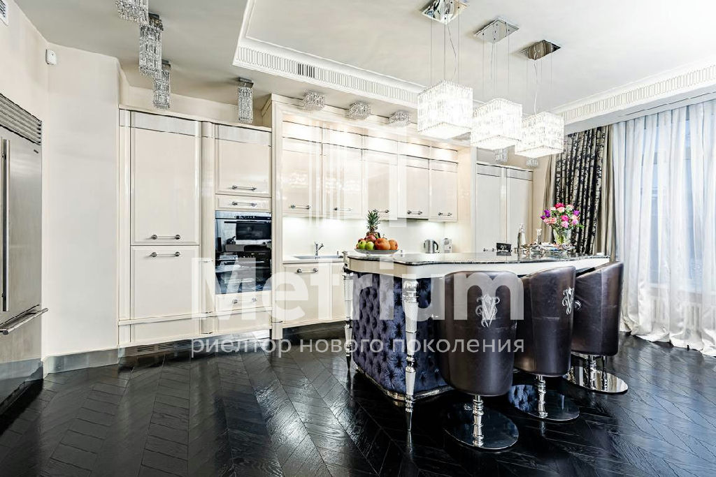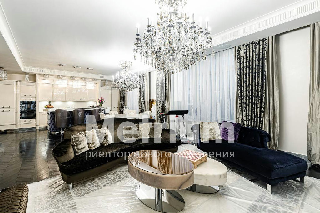 Квартира меблирована, оборудована современной бытовой техникой и готова к проживанию. Функциональная планировка включает в себя кухню-гостиную, 3 спальни, 3 санузла.